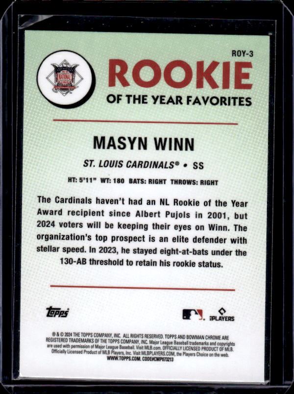 Masyn Winn RC Bowman Chrome ROY Favorites #ROY-3