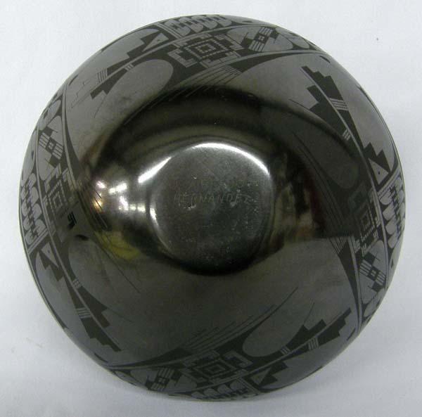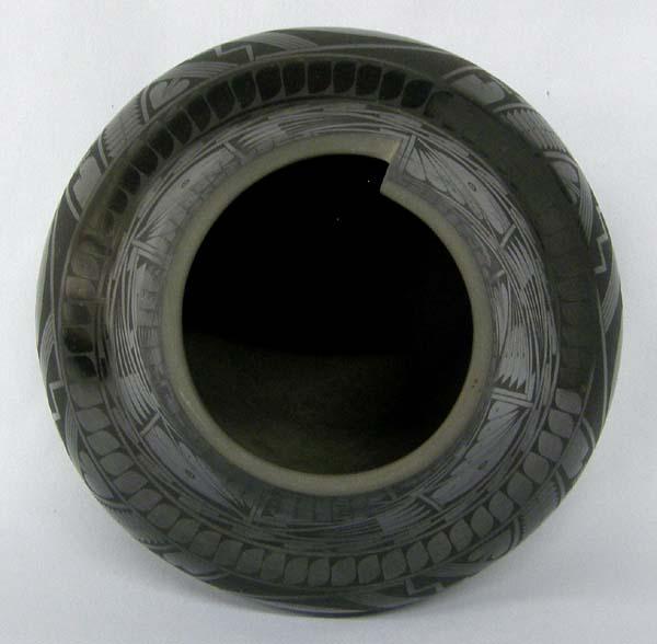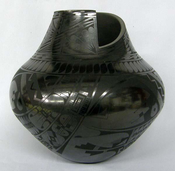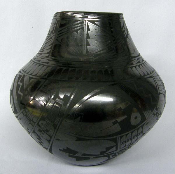 Mata Ortiz Black on Black Burnished Pot by J. Alfredo Hernandez. Measured approx. 8.75''Hx8.75''W. Buyers Pay Actual Shipping and Handling Charges(see terms and conditions for more information).