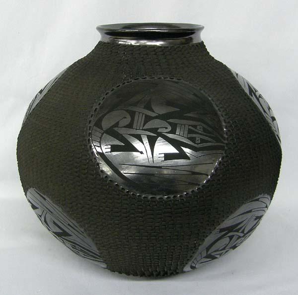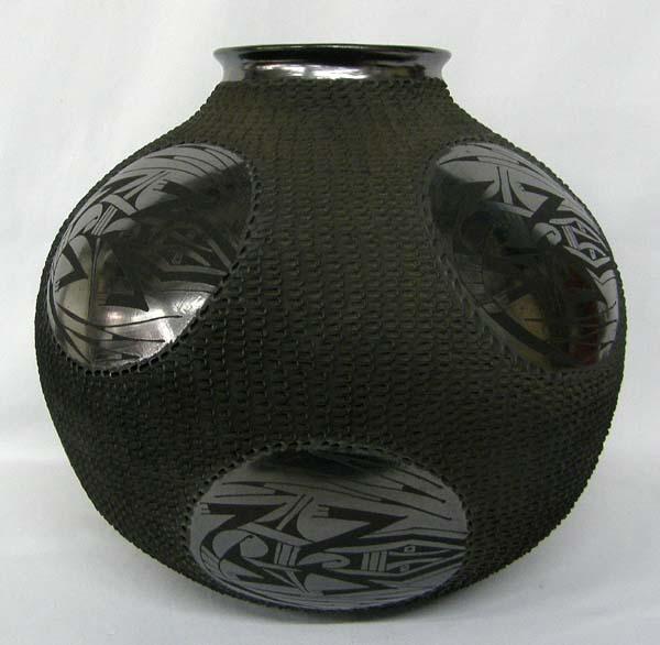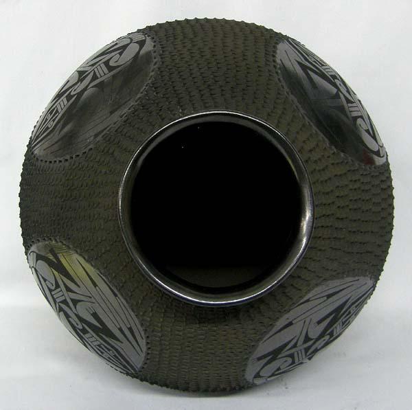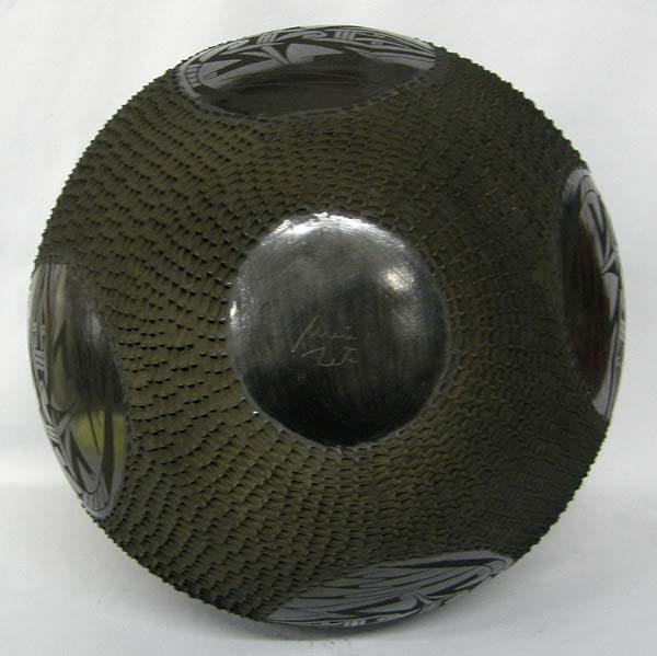 Mata Ortiz Black Textured Lizard Pot by Lucie Sote. Measures approx. 12''Hx14''W. Buyers Pay Actual Shipping and Handling Charges(see terms and conditions for more information).