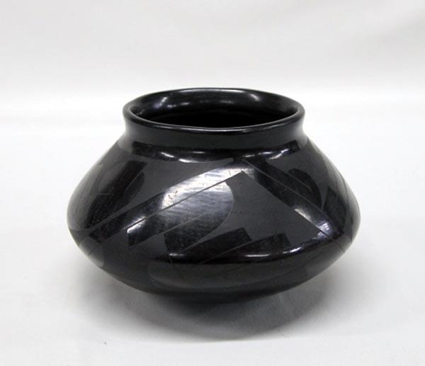 Mata Ortiz Black on Black Pot, measures 4.5'' x 7.6''. Buyers Pay Actual Shipping and Handling Charges(see terms and conditions for more information).