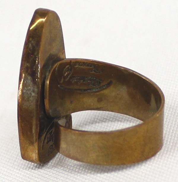 Mata Ortiz Copper & Pottery Sherd Ring, Size 7.5, measures 1''L, hallmarked