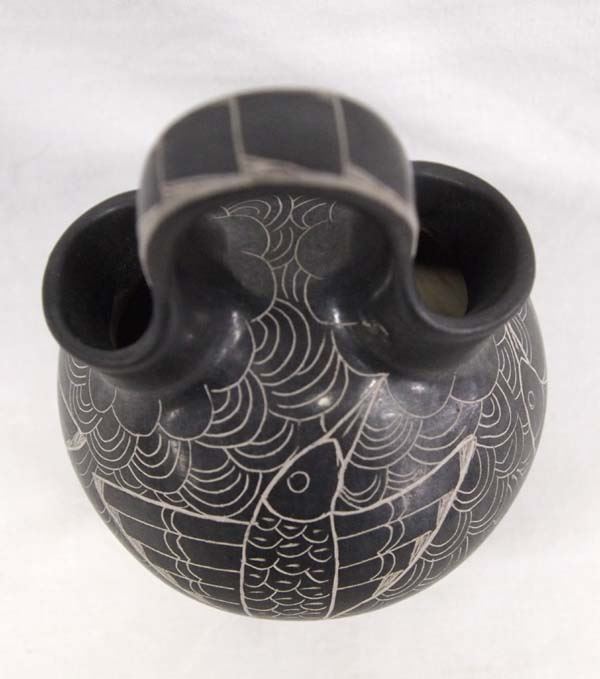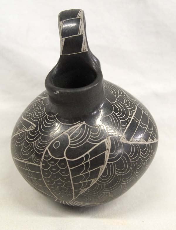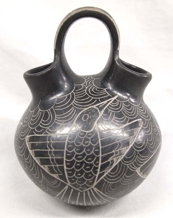 Sweet Mata Ortiz Sgraffito Hummingbird Wedding Vase by Cruz Celia, signed on bottom by artist, measures 5''H x 3.5''D