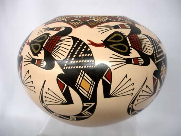 Mata Ortiz Lizard Design Pot by Roberto Banuelos. Measures 7.25'' diameter x 5.5'' high. Buyers Pay Actual Shipping and Handling Charges(see terms and conditions for more information).