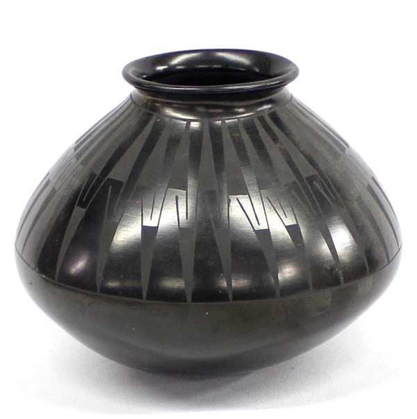 Mata Ortiz Matte on Black Geometric Pottery Jar by Hilario Quezada, measures 7'' x 7.5'' and is signed on the bottom