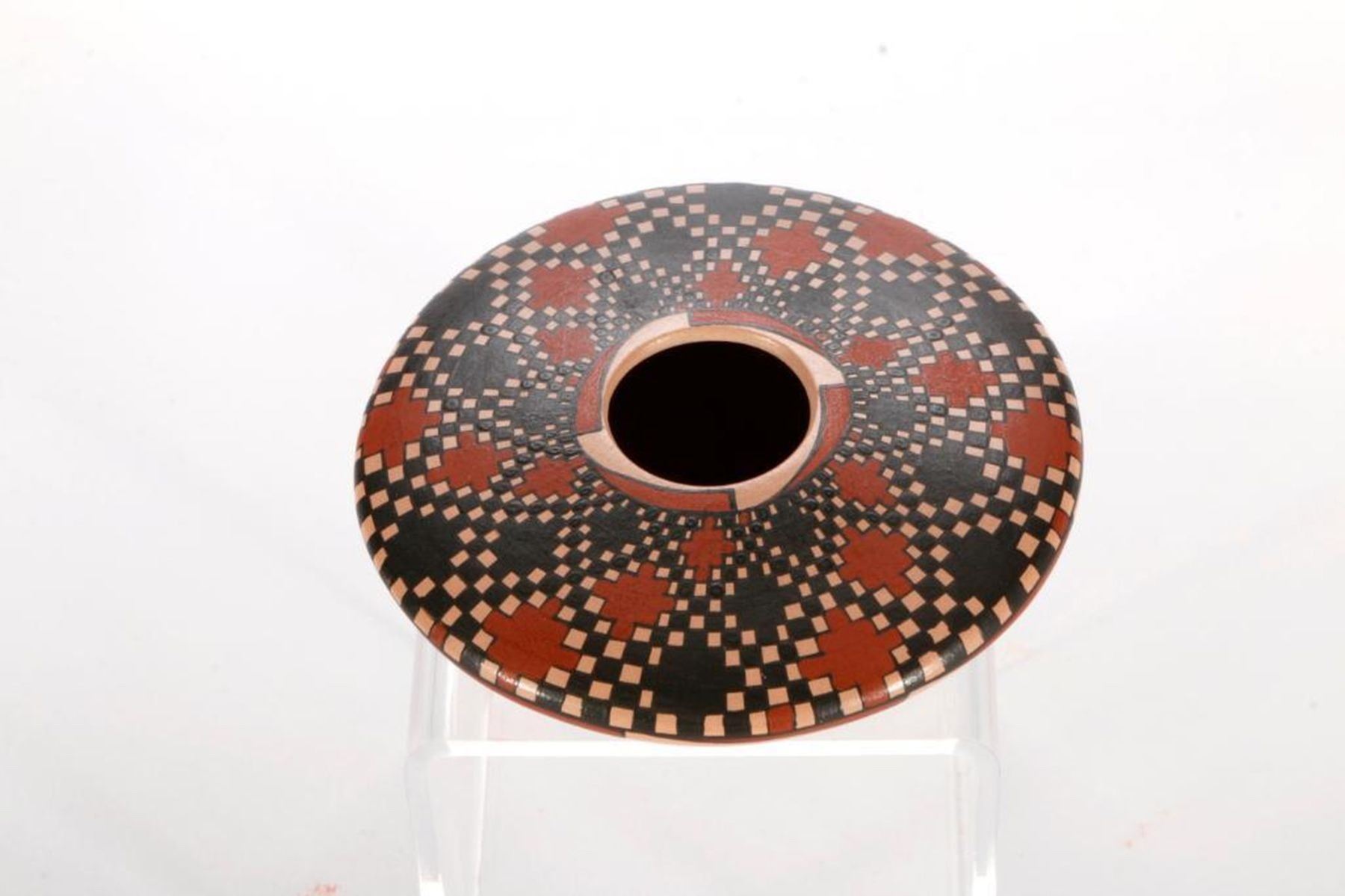 Mata Ortiz (Mexican jar) (1"tall x 3 3/4" wide) by Julio Mora; McGee's Indian Art; Keams Canyon, Arizona.