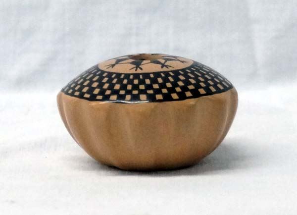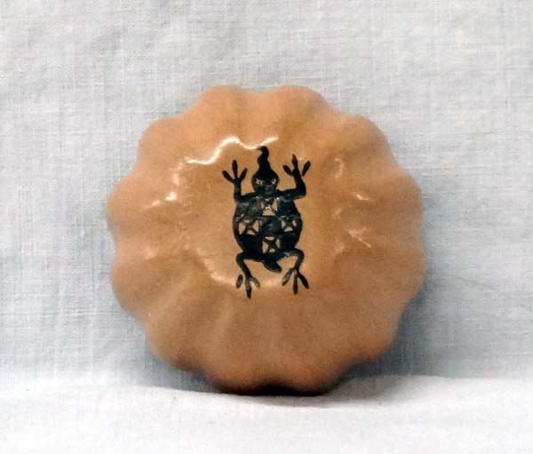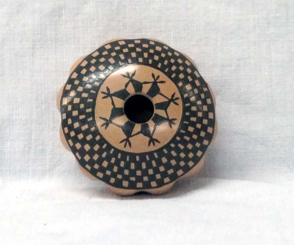 Mata Ortiz Miniature Frog Seed Pot by Carmen Veloz, 1''H x 1.75''D, signed on bottom by artist