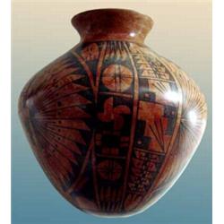 Mata Ortiz Olla. Sponged Brown Slip. 7.5" Tall signed. Estimate $150 - $250.