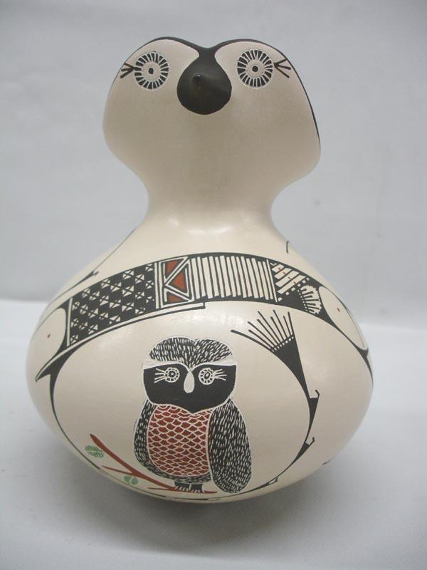 Mata Ortiz Owl Effigy Pot by Angela Corona. Incised owl and owl eyes. Measures 6''x5''. SHI $25.
