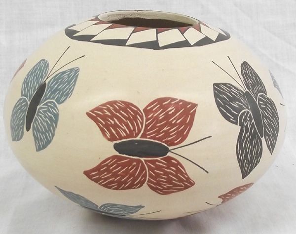 Mata Ortiz Polychrome Bufferfly Pottery - Rosa Gaona.  Measures approx. 4 'H x 5.75''