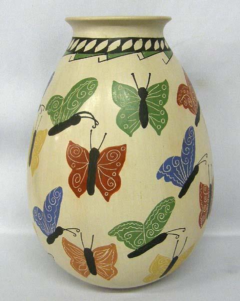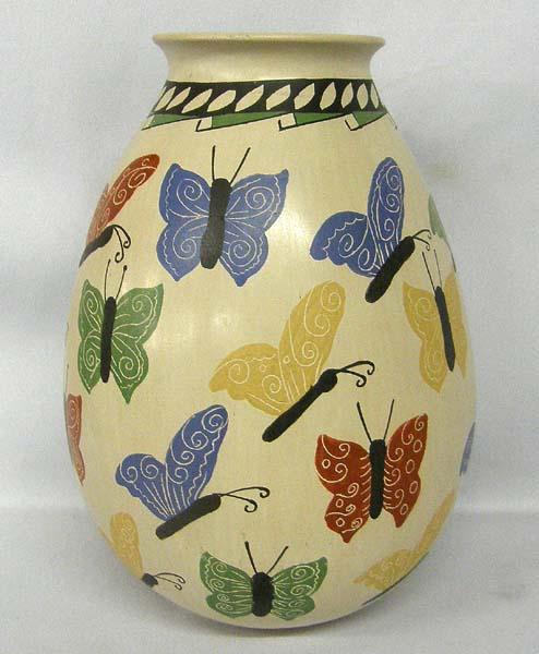 Mata Ortiz Polychrome Butterfly Pot. No Signature. Measures approx. 9''Hx6.75''W. Buyers Pay Actual Shipping and Handling Charges(see terms and conditions for more information).