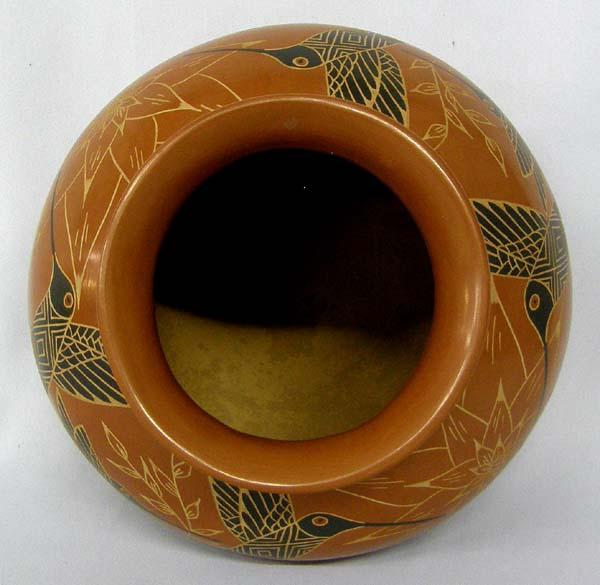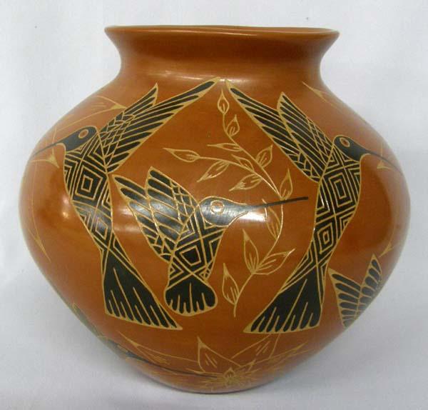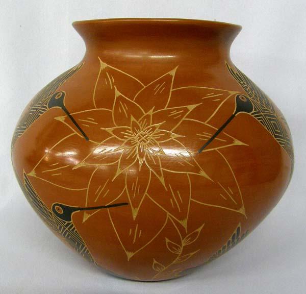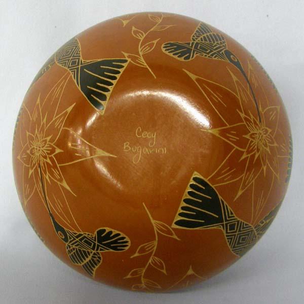 Mata Ortiz Polychrome Etched Pot by Cecy Bugarini. Measures approx. 7.5''Hx8.5''W. Buyers Pay Actual Shipping and Handling Charges(see terms and conditions for more information).