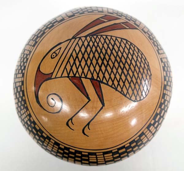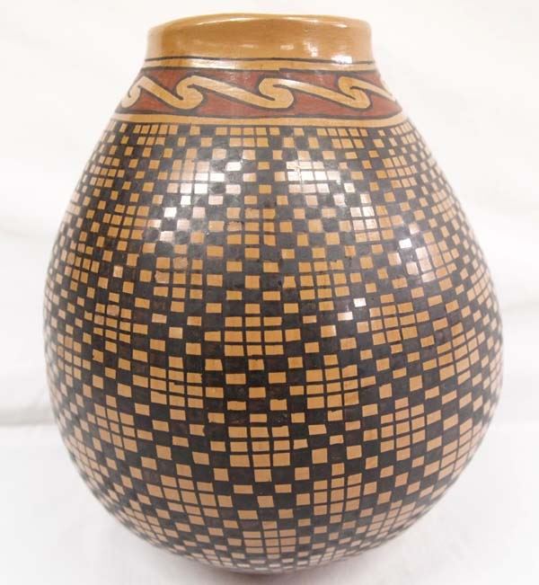 Mata Ortiz Polychrome Eye Dazzler Jar by Daniel Gonzalez, measures 7.5''H x 7''W, features insect on bottom