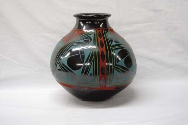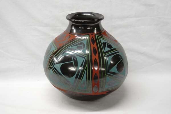 Mata Ortiz Polychrome Geometric Jar by Lucie Soto, measures 10'' x 10'', signed by artist