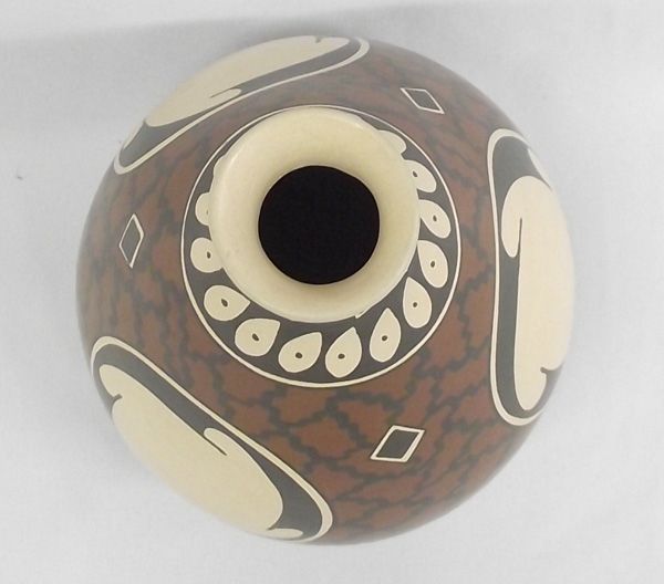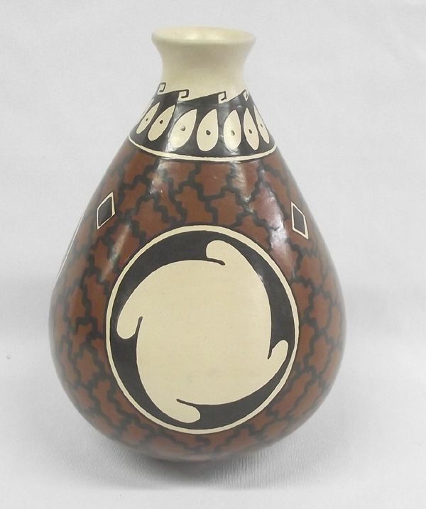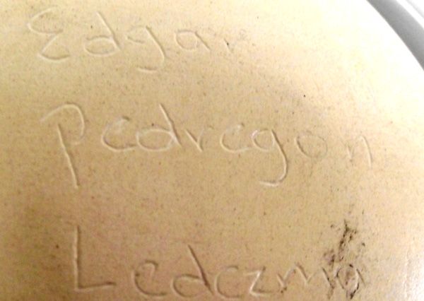 Mata Ortiz Polychrome Jar - Edgar P Ledezma. Sweetly shaped jar or vase from Mata Ortiz, signed on the bottom, ''Edgar Pedregon Ledezma.'' It measures 5.5''H x 6.5''W and has some shelf wear on the bottom.