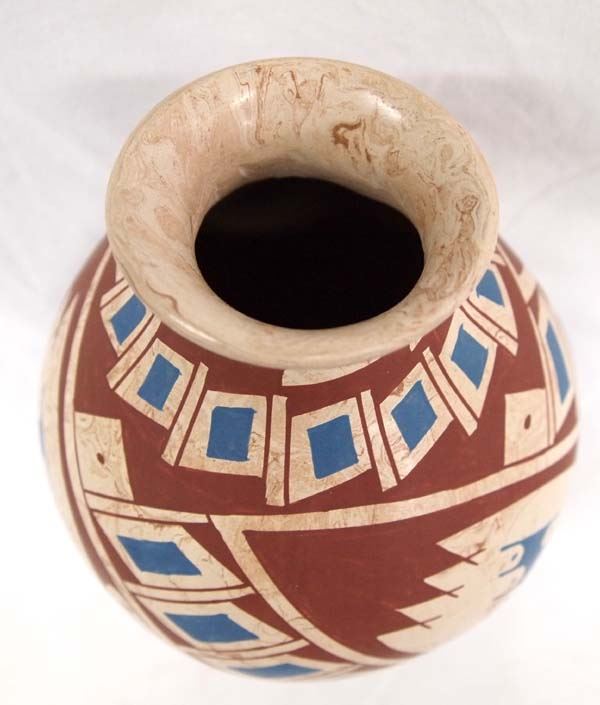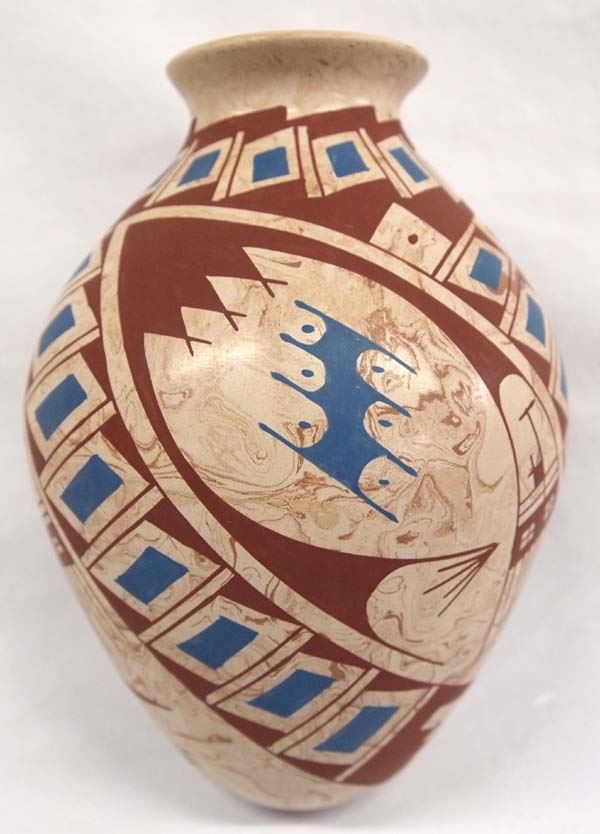 Mata Ortiz Polychrome Marbleized Clay Jar by Briana Bejarano, measures 7.25H x 5''D, signed on bottom by artist