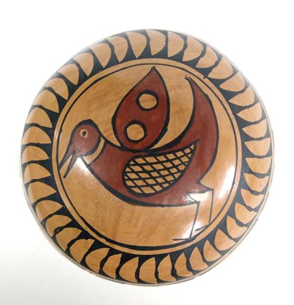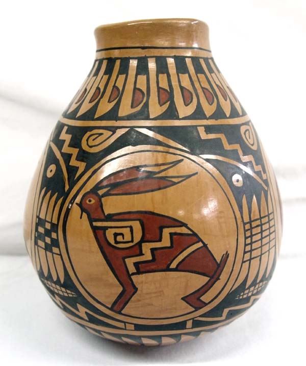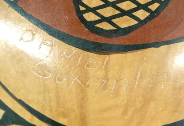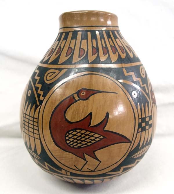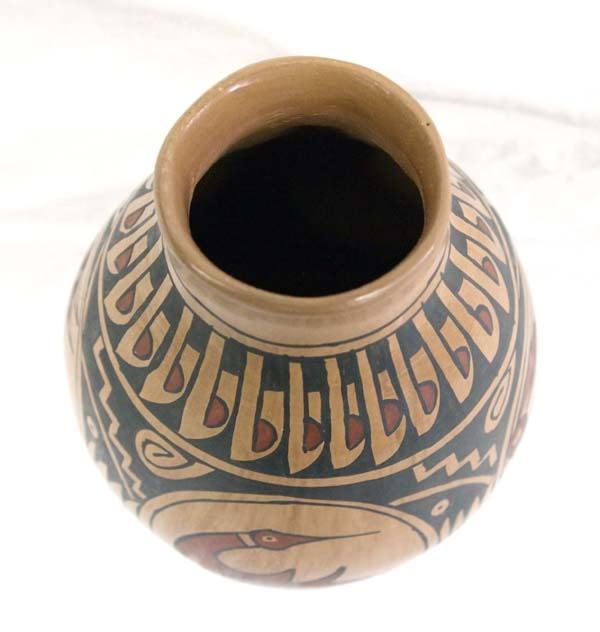 Mata Ortiz Polychrome Bird and Rabbit Jar by Daniel Gonzalez, measures 6''H x 5.5''D, signed on bottom by artist
