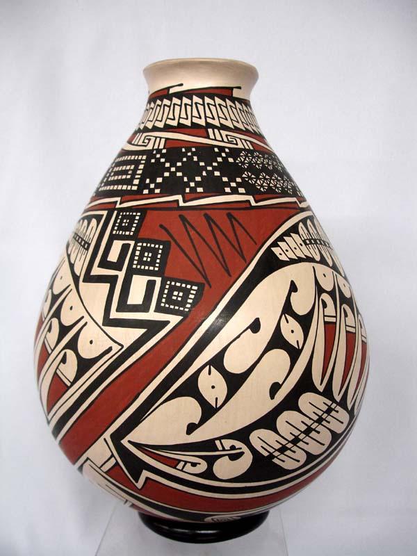 Mata Ortiz Polychrome Jar by Rosa Gaona. Pot Ring Included. Measures 10.25''x8''. Buyers Pay Actual Shipping and Handling Charges(see terms and conditions for more information).