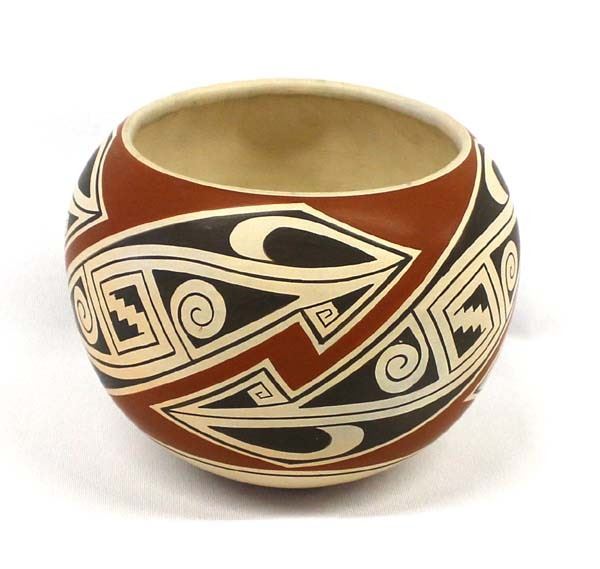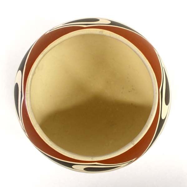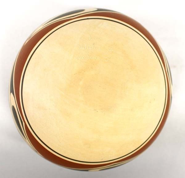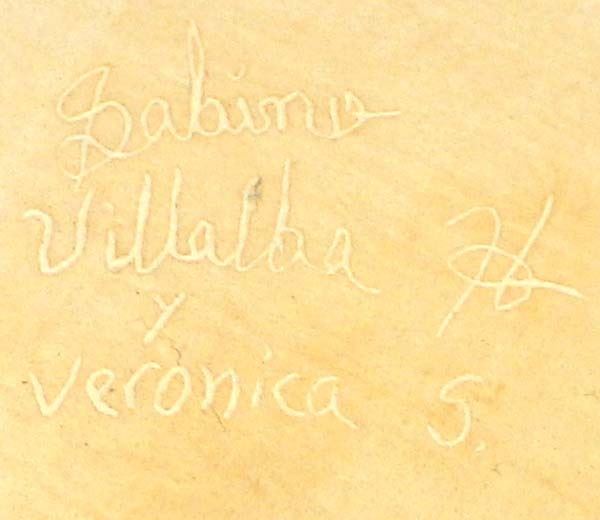 Mata Ortiz Polychrome Jar by Sabino Villalba H. & Veronica S., measures 5'' x 6'' and is signed on the bottom, features beautiful Paquime' inspired designs, well executed, nice crisp paint