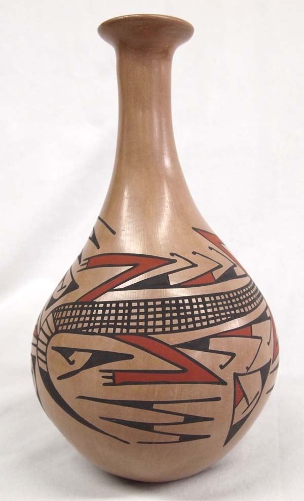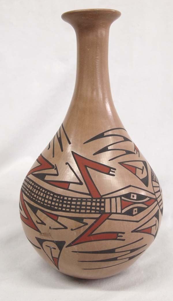 Mata Ortiz Polychrome Lizard Vase by Lucie Soto, pulled spout, measures 10.5''H x 6''D, signed on bottom by artist
