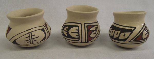 Mata Ortiz Polychrome Miniature Pots, measure 1.5'' x 2'', unsigned, traditional Paquime' inspired geometric lines and designs