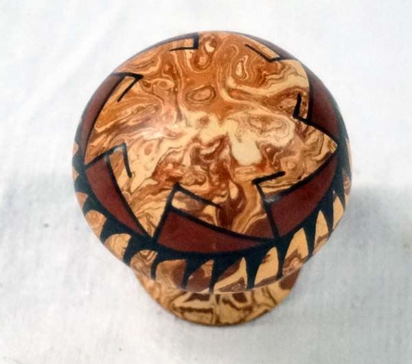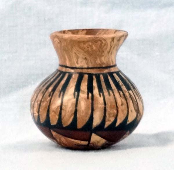 From the Whittredge Estate, we have a Mexican Mata Ortiz Polychrome Miniature Vase by Paty Ortiz, signed by artist and measures 2''H x 1.75''W, stylized feather designs