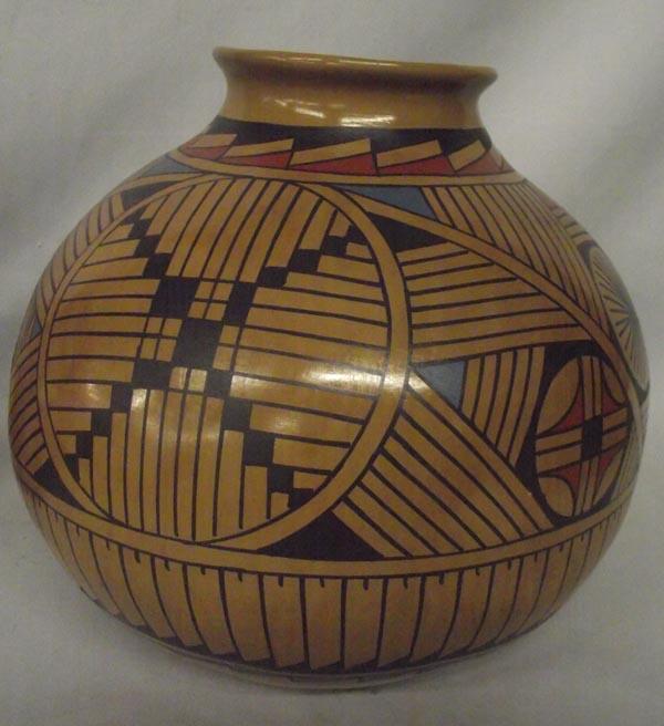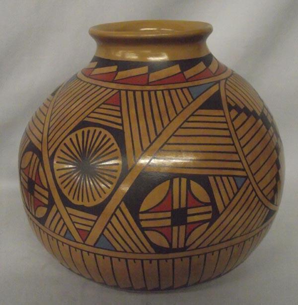Large Mata Ortiz Polychrome Geometric Design Olla by Jesus Tena, measures approx. 11''Diameter x 10''H. Buyers Pay Actual Shipping and Handling Charges(see terms and conditions for more information)