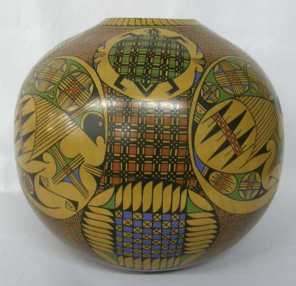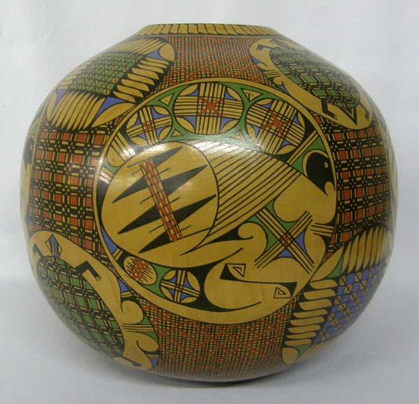 Mata Ortiz Polychrome Pot by Elfida Tena. Measures approx. 10''Hx11''W. Buyers Pay Actual Shipping and Handling Charges(see terms and conditions for more information).