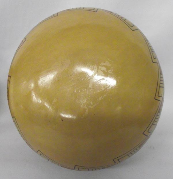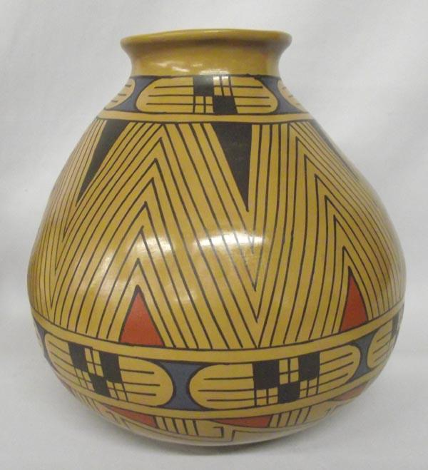 Mata Ortiz Polychrome Olla With Geometric Designs by Jesus Tena, measures approx. 11''Diameter x 11''H. Buyers Pay Actual Shipping and Handling Charges(see terms and conditions for more information)