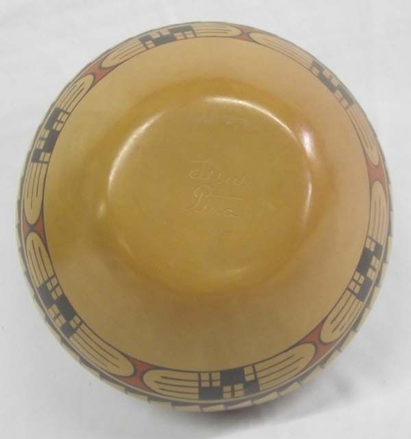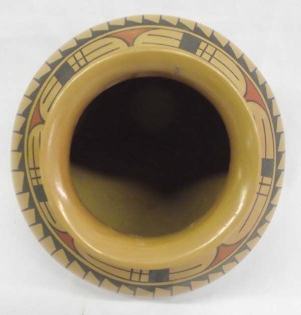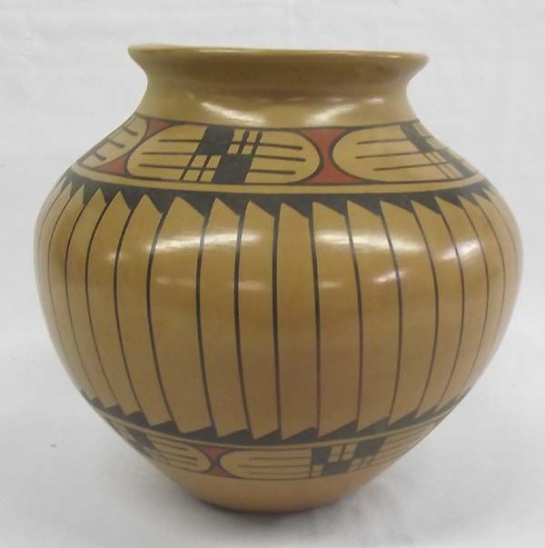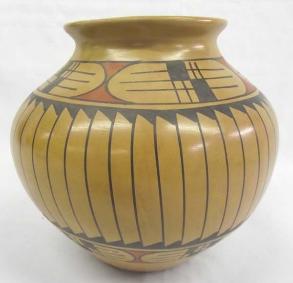 ''Mata Ortiz Polychrome Pottery Jar - Jesus Tena, measures approx. 8.5 x 9''. Etched signature of artist on the bottom. Polychrome stylized feather pottery.