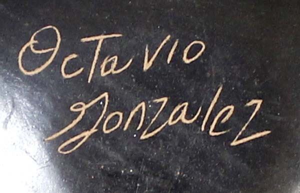 Mata Ortiz Polychrome Pottery Seed Jar by Octavio Gonzalez, measures 4'' x 5'' and is signed on the bottom