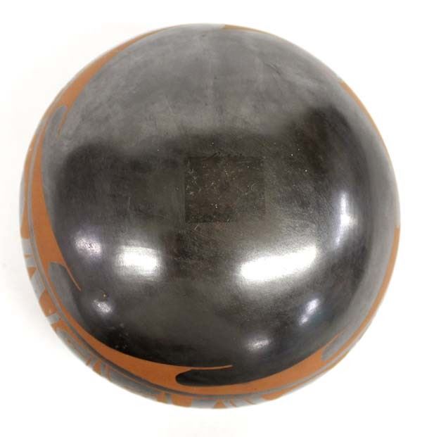 Mata Ortiz Polychrome Seed Jar by Cruz Villa, measures 3'' x 4.25'', unique cutaway lizard opening on top of jar