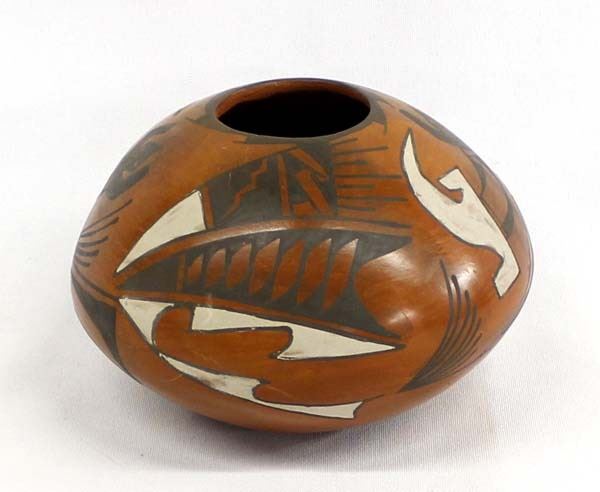 Mata Ortiz Polychrome Seed Jar by Lupe Sandoval, measures 3.5'' x 5'' and is signed on the bottom