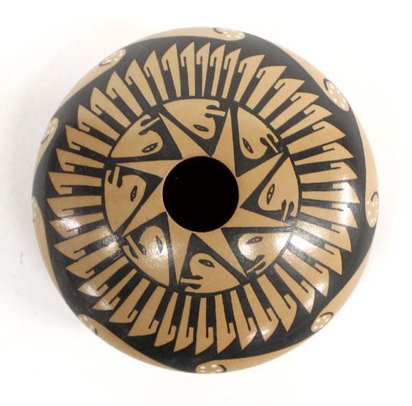 Mata Ortiz Polychrome Seed Jar by Rosy Mora, measures 2.25'' x 4''D and is signed on the bottom