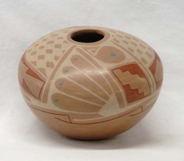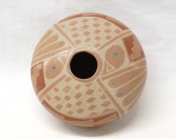 Mata Ortiz Polychrome Seed Jar by Sanby, measures 3.5'' x 4.5''D, signed by artist