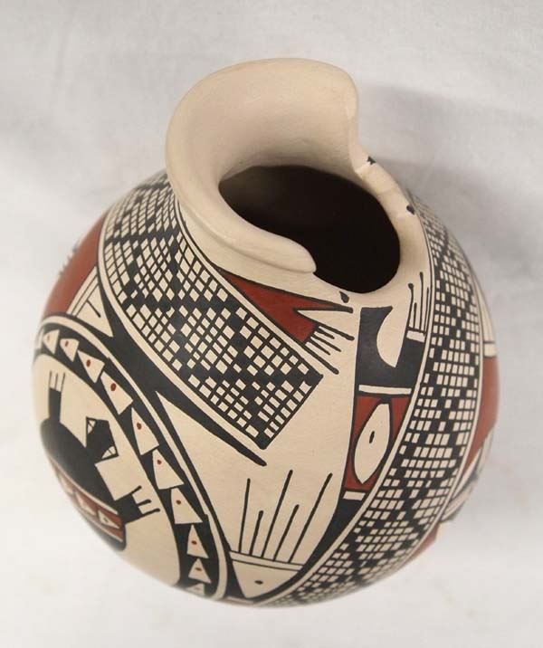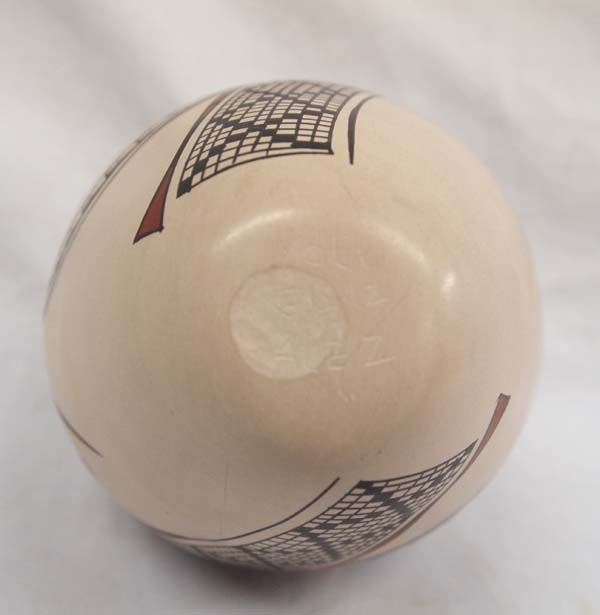 Wonderful Mata Ortiz Polychrome Turtle Jar by Yoli Gonzalez, signed on bottom by artist, Paquime' inspired eye dazzler designs, measures 8''H x 5.5''D, stunning cutaway rim,