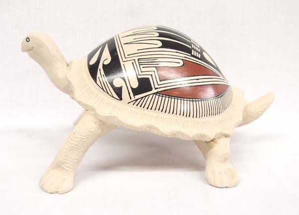 Mata Ortiz Polychrome Turtle by Dulces N. Melero, measures 5''H x 10''L, signed by artist, right front foot has been glued (toes)