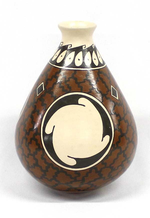 Mata Ortiz Polychrome Vase by Edgar Pedrego Ledezma, pulled spout, measures 7'' x 5'' and is signed on the bottom