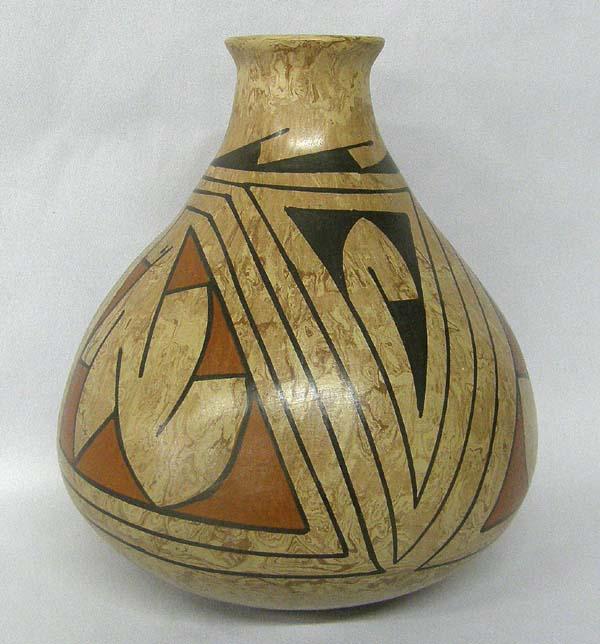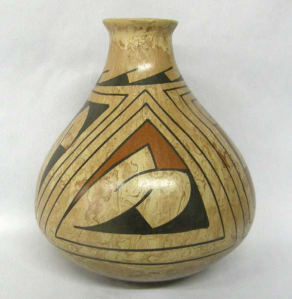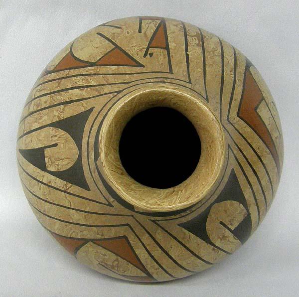 Mata Ortiz Polychrome on Marbled Pot by L.O.. Measures approx. 7.5''Hx6.5''W. Buyers Pay Actual Shipping and Handling Charges(see terms and conditions for more information).