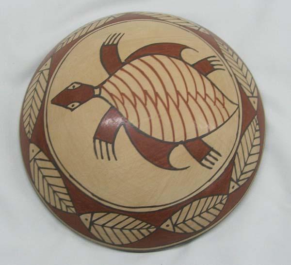 Mata Ortiz Pottery Bowl By Daniel Gonzalez, Kokopelli and turtle designs. Measures approx. 3''H x 8''W. Buyers Pay Actual Shipping and Handling Charges(see terms and conditions for more information).