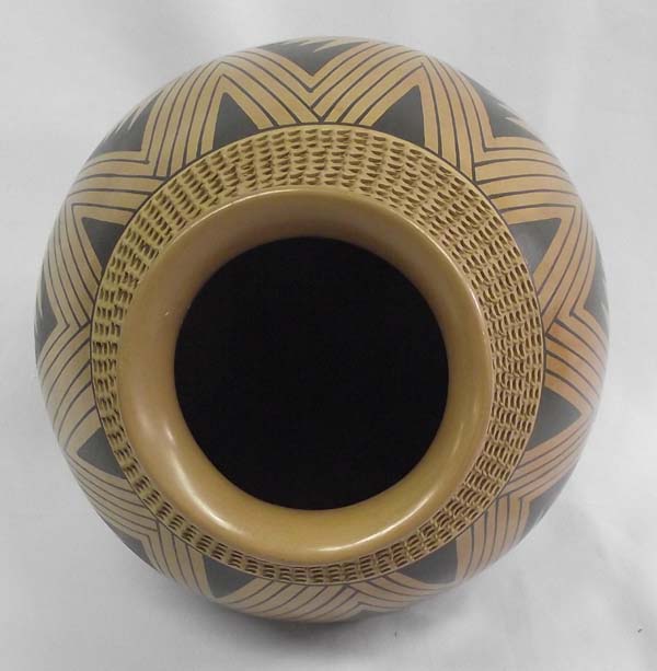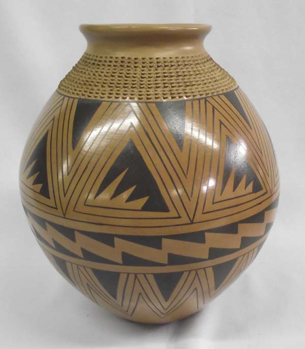 Mata Ortiz Pottery By Jesus Tena. Geometric designs with some texturing. Measures approx. 10 1/2''H x 9 1/2''W. Buyers Pay Actual Shipping and Handling Charges(see terms and conditions for more information).