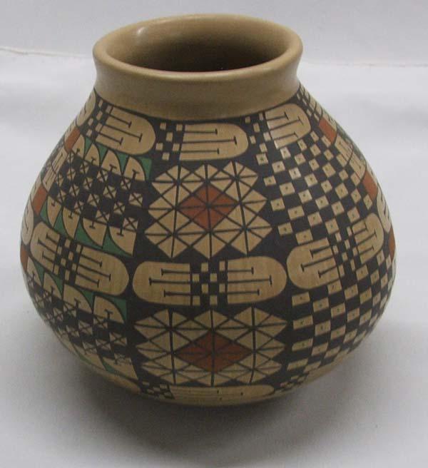 Mata Ortiz Pottery By Martha Hernandez, measures approx. 5 1/2''H x 6''W. Polychrome. Buyers Pay Actual Shipping and Handling Charges(see terms and conditions for more information).