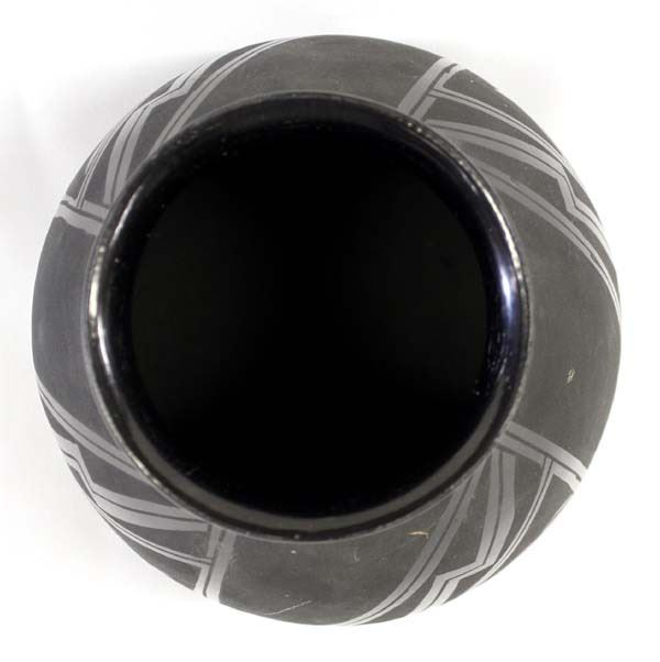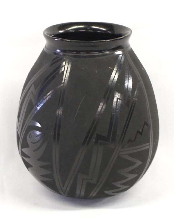Mata Ortiz Black and Black Pottery Jar by David Ortiz, measures 6.5'' x 7.5'' and is signed on the bottom