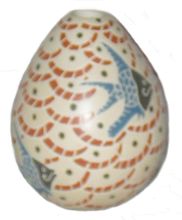 Circa 2009, Luz Elva Gutierrez, Miniature polychrome pottery jar with beautiful fish design. 3-1/4" x 2-1/2"