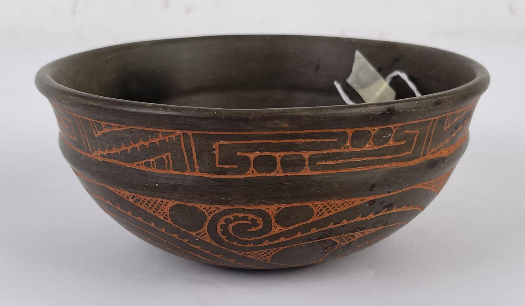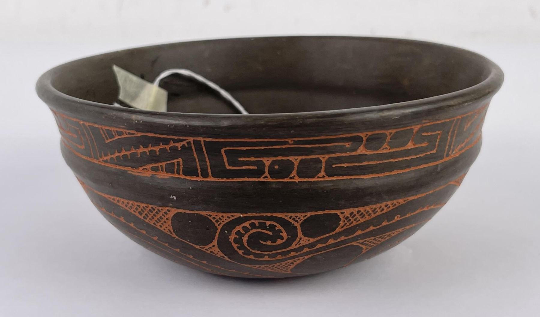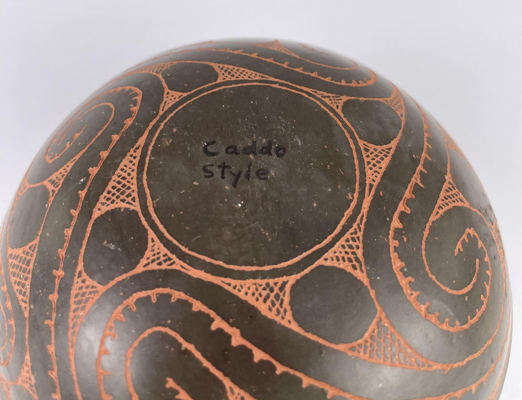 Signed Caddo Style. 6" diameter, 2 3/4" tall. Allard Auction Collection Inv: ADW 26333