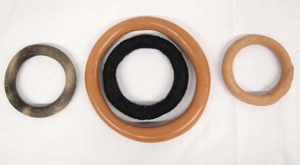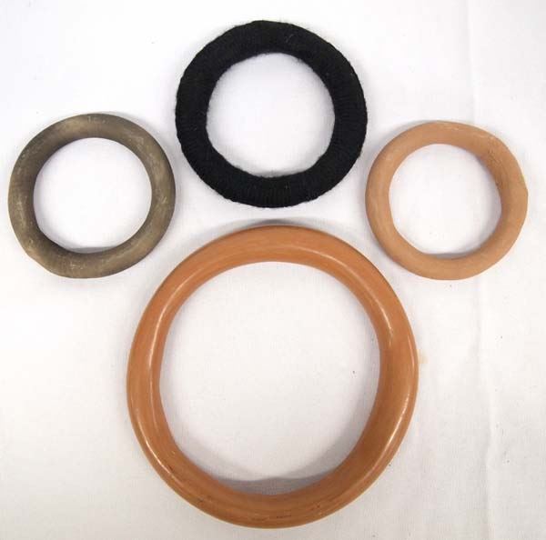 Mata Ortiz Pottery Rings, one is yarn covered, largest measures 5.25''D