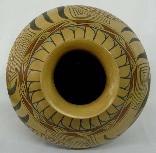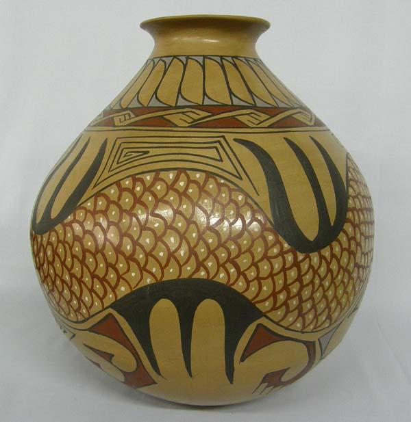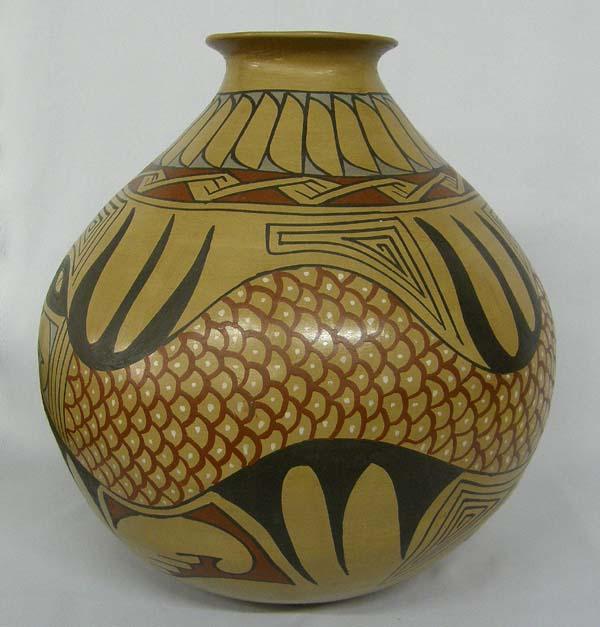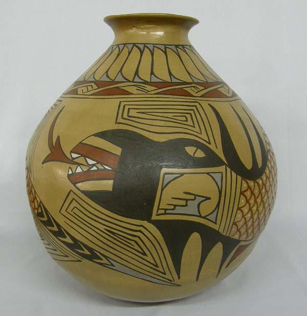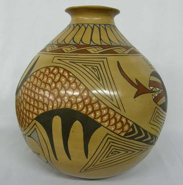 Mata Ortiz Pottery by Miguel Bugarini, measures approx. 15.5'' x 13''. SHI $100.
