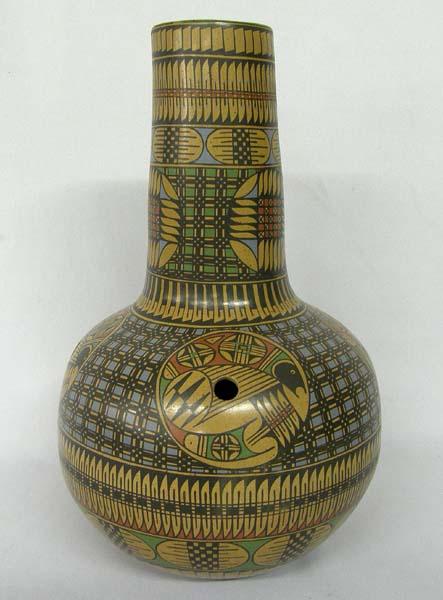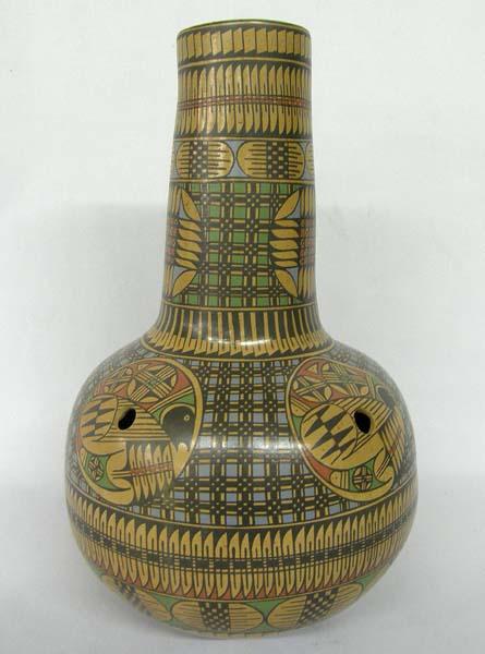 Mata Ortiz Pulled Spout Polychrome Pot by Elfida Tena. Measures approx 12.5''Hx7.75''W. Buyers Pay Actual Shipping and Handling Charges(see terms and conditions for more information).