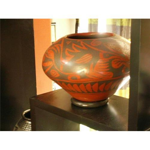 <tr><td>Title: Mata Ortiz School Hand Coiled Red Ware Olla</td></tr>