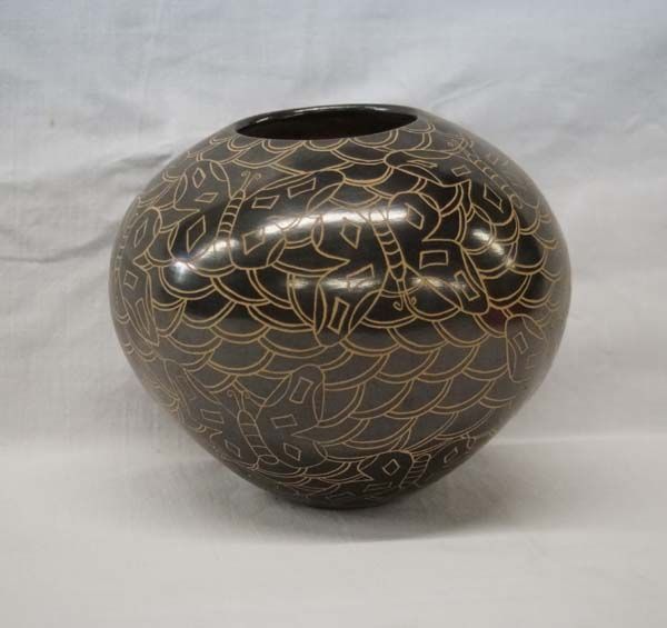 Mata Ortiz Sgraffito Jar, measures 5''H x 6''W, hallmarked by artist VVR