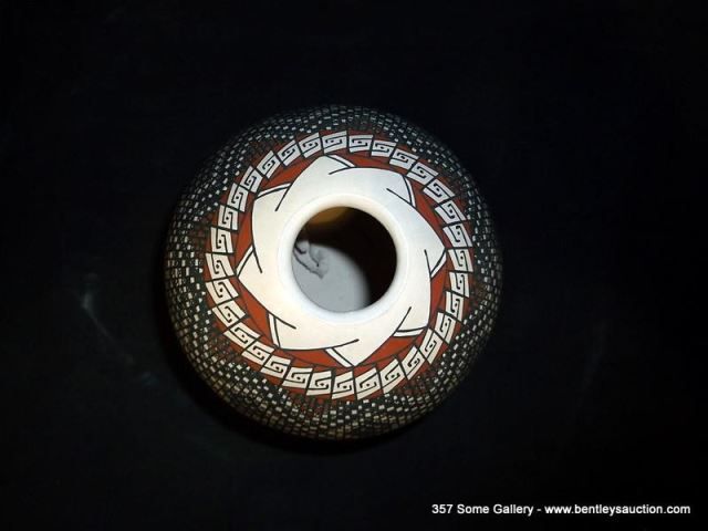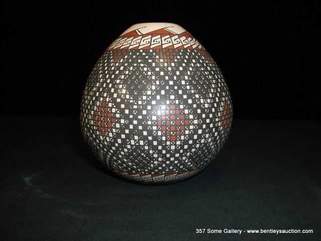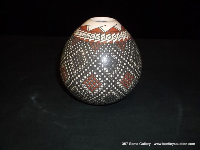 Mata Ortiz Small Pot, Geometric, Polychrome 4-1/4" High x 4" Diam, Orif. at 7/8"